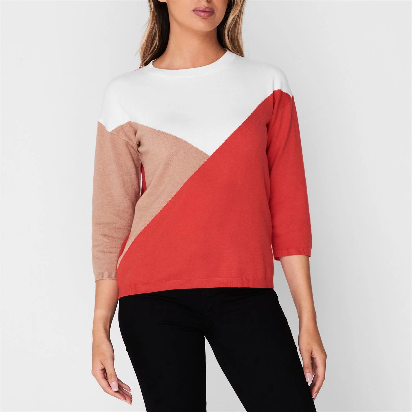 Upgrade your knitwear this A/W with the Emme Ceres jumper. Designed with geometric coloured panels, you are sure to make a statement. This three-quarter length sleeved jumper will look great paired with some denim jeans for a casual day-to-day look.