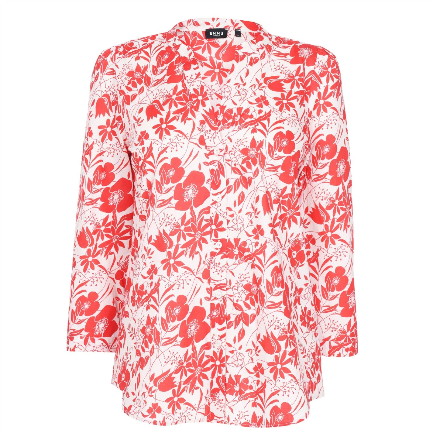 Update your collection with this Emme Chiffon Blouse. Crafted with a grandad collar and full button fastening for a secure fit, it features long sleeves with button cuffs for a comfortable fit. This blouse is an all over print design with a signature logo and is complete with Emme branding.