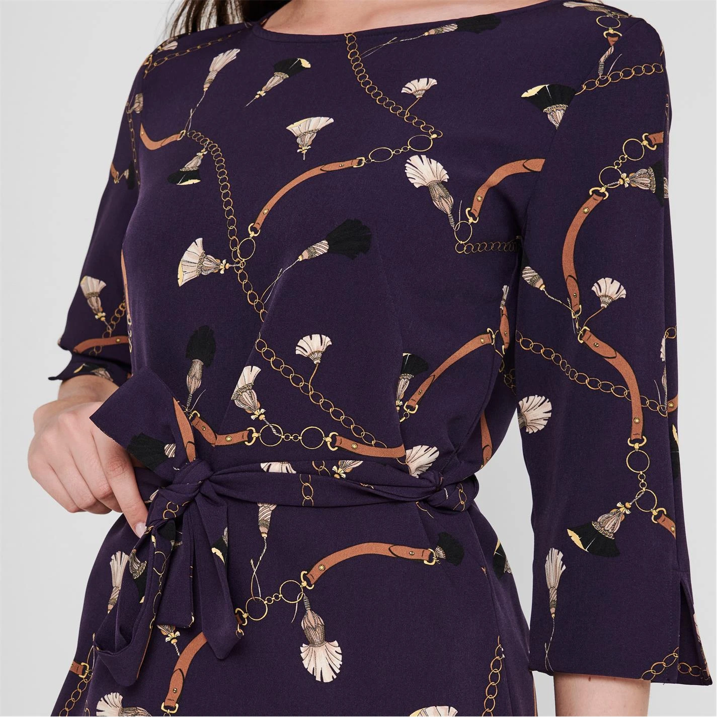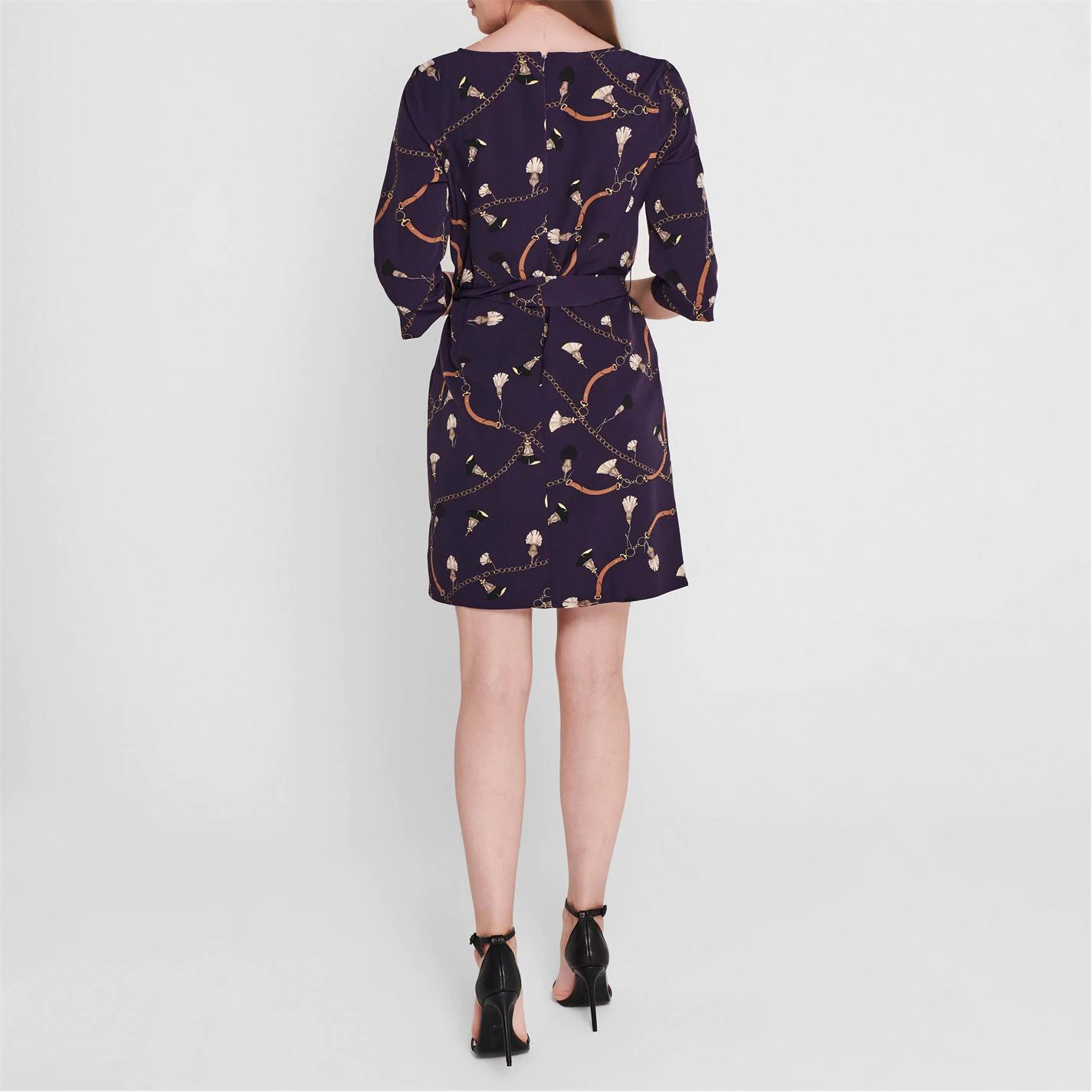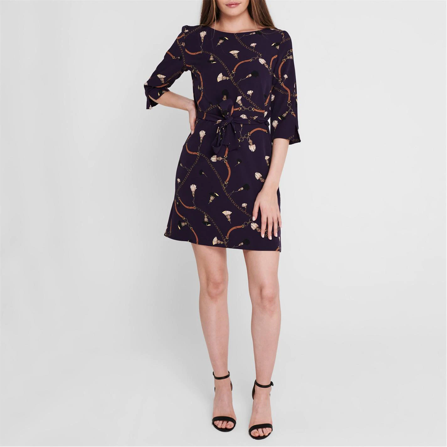 Update your dress collection with this statement piece from Emme. Adorned with an over all pattern and vintage yet modern motifs, the Voga Mini Dress features a scoop neckline, long sleeves and belt tie for a flattering and figure hugging finish. Made from 90% Polyester and 10% Elastane.