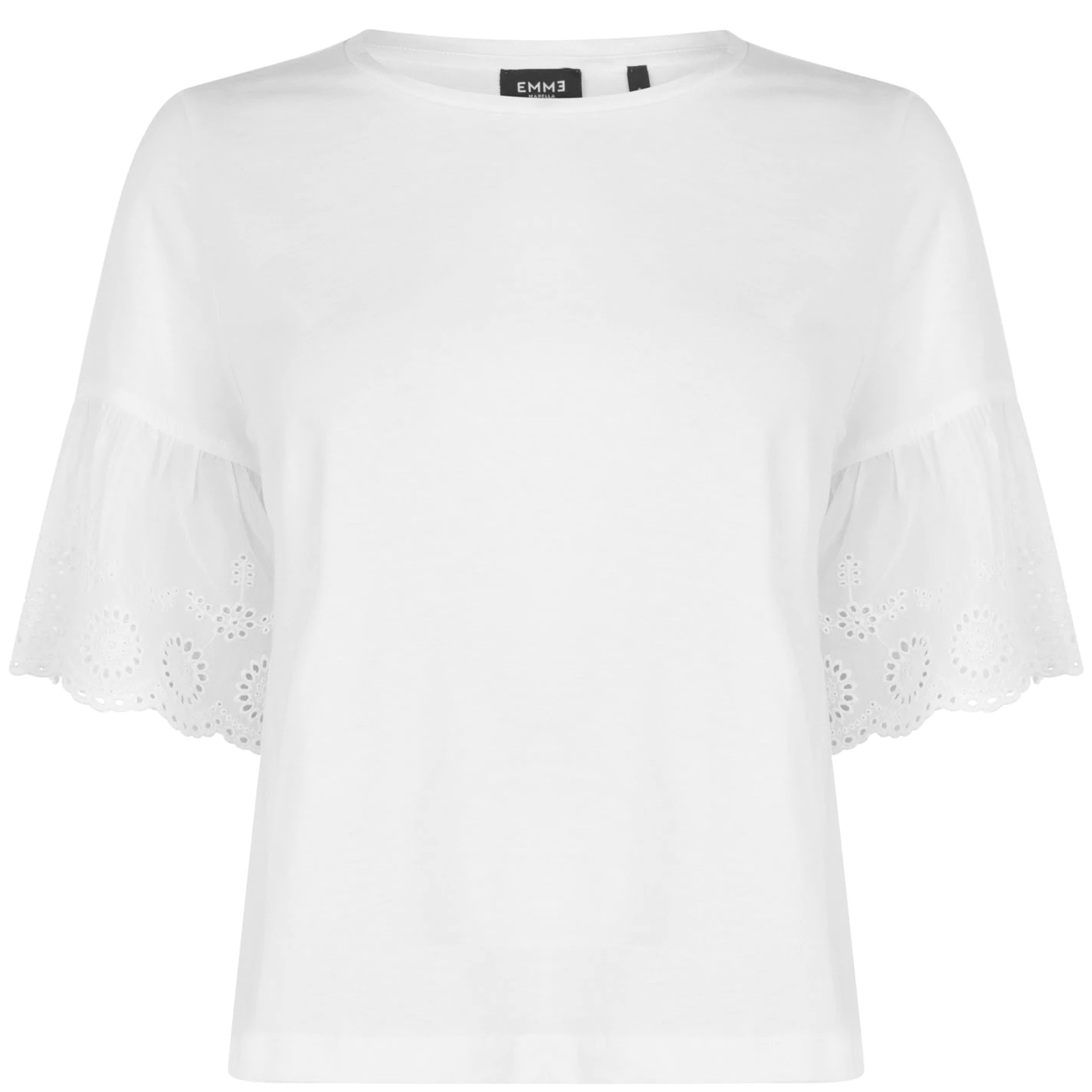 Elevate your collection with this Emme Folco Top. Crafted with short sleeves and a crew neck for a classic look, it features embroidered detail for added style. This top is designed with a signature logo and is complete with Emme branding.