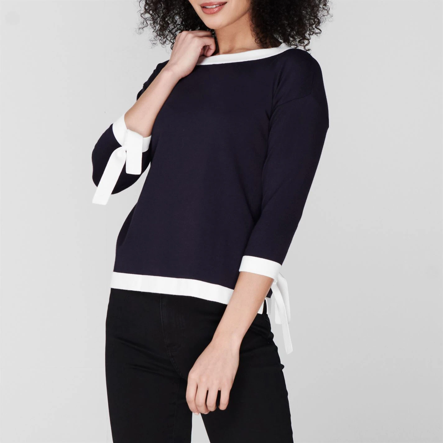 Refresh your collection with this emme Frate Long Sleeve Knit Jumper. Constructed with long sleeves and a crew neck for a classic look, this jumper features ribbed trims for comfort. The look is finished with tie detailing and is complete with contrasting trims and the Emme brand.